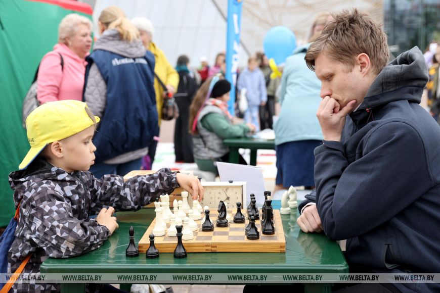 Второй детский фестиваль "Должны смеяться дети и в мирном мире жить" объединил ребят со всей столицы. В атмосфере творчества, игр и веселья каждый смог найти занятие по душе. Среди гостей праздника были учащиеся Республиканского государственного училища олимпийского резерва Антон Абцешко и Артем Леонович. "Посмотрели на шахматы, сфотографировались с динозавром. Настроение отличное!" - отметил Антон.
