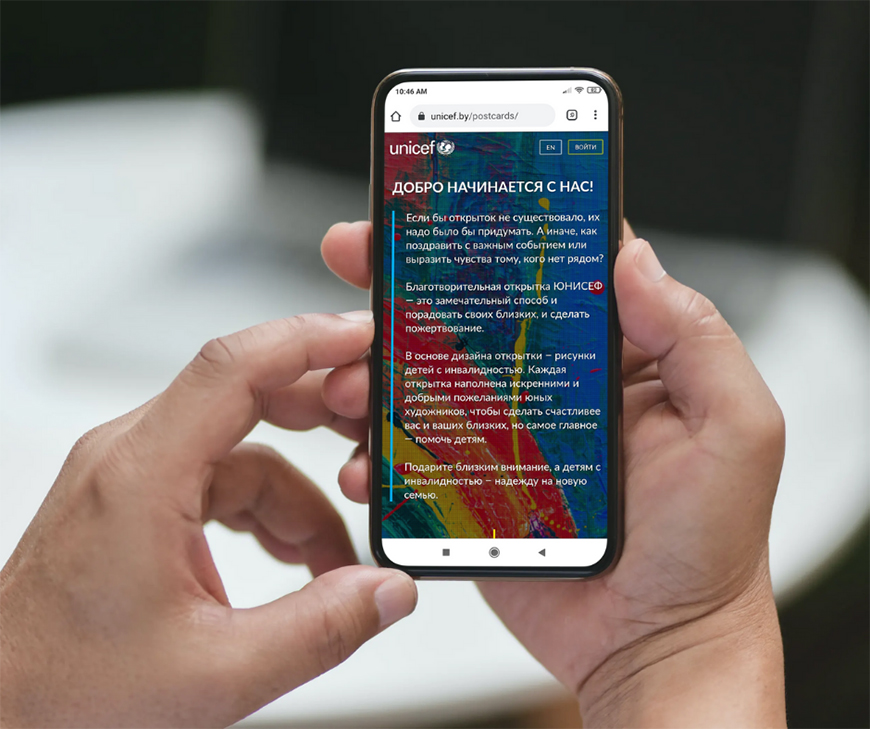 Добрая традиция дарить открытки за небольшое пожертвование на развитие программной деятельности ЮНИСЕФ в Беларуси зародилась в 2020 году под Рождество. Тогда новогодние открытки получили около 200 человек по всей республике. На этот раз акция "Добро начинается с нас" стартует в преддверии весеннего праздника 8 Марта. Но поздравить родных и друзей открыткой от ЮНИСЕФ теперь можно и в день рождения. Оформить электронную или бумажную открытку, совершив пожертвование, можно на сайте организации, а волонтеры ЮНИСЕФ в Беларуси отправят ее адресату.