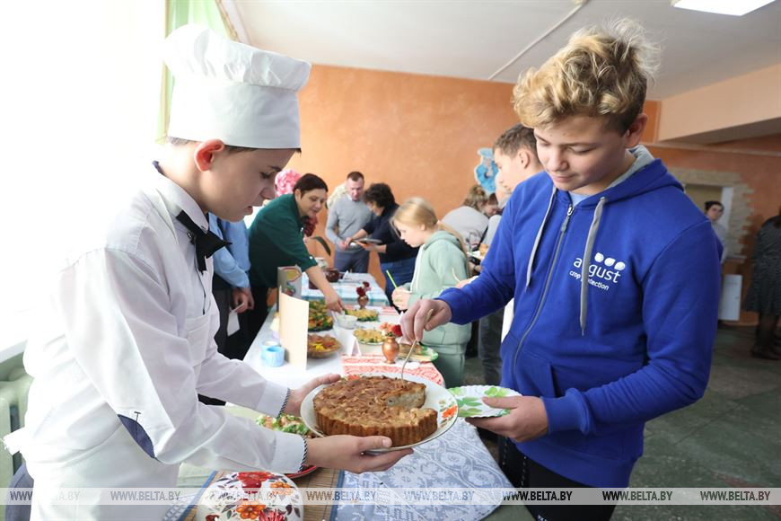 Ребят из России познакомили с жизнью воспитанников школы-интерната. Для них организовали гастрономический фестиваль "Бульба-фэст", выставку поделок "Осенних красок карнавал" и концерт "Праздник урожая - 2023". Россиянин Александр Марченко поделился, что директор их учреждения часто рассказывала о Беларуси. "Но я не знал и не верил, что у меня появится возможность увидеть ее самому", - сказал он. Мальчик рассказал, что особенно его впечатлил гастрономический фестиваль. "Было очень много интересных блюд. Видно, что ребята очень старались показать нам белорусскую кухню. А на выставке меня впечатлила работа с Чебурашкой и Крокодилом Геной. Это очень интересно", - поделился впечатлениями Александр Марченко.