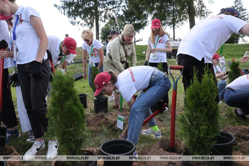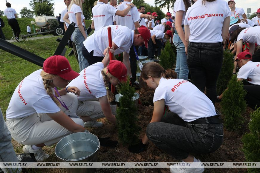 Около 200 участников "Поезда Памяти" из России и Беларуси посетили историко-культурный комплекс "Линия Сталина". Для школьников прошла экскурсия, а также они посадили 78 туй в честь 78-й годовщины освобождения Беларуси.