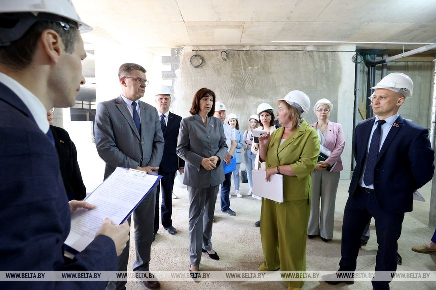 Наталья Кочанова оценила, как идет строительство объекта, состоялось предметное обсуждение хода выполнения поручений главы государства и председателя Совета Республики по его возведению.