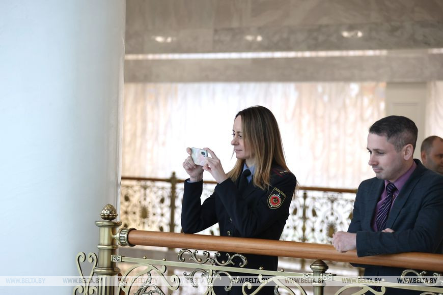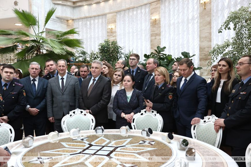 18 апреля, Минск /Корр. БЕЛТА/. В Минске во Дворце Независимости прошла очередная, но очень примечательная экскурсия. На этот раз гостями дворца стали сотрудники Государственного комитета судебных экспертиз, который 22 апреля отметит свое 10-летие, передает корреспондент БЕЛТА.