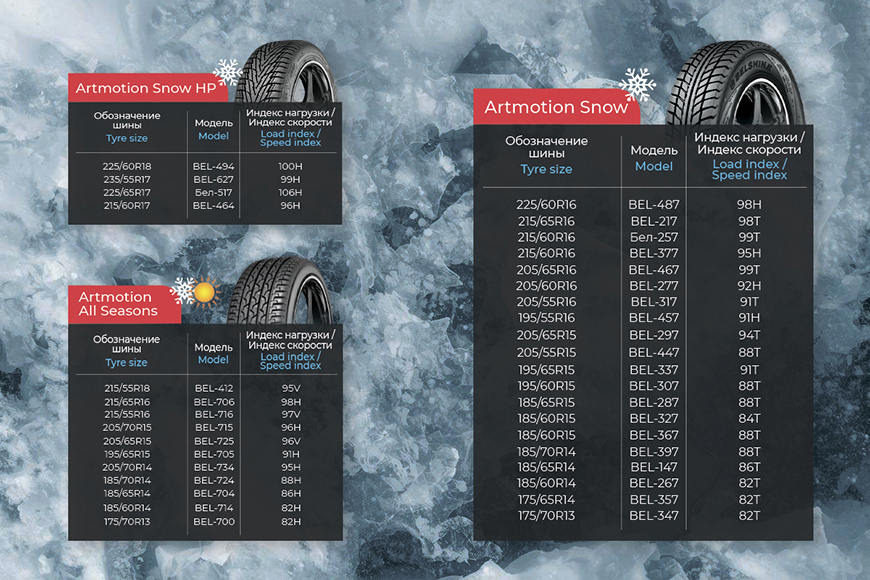 Зимние шины Artmotion Snow и Artmotion Snow HP уже успели зарекомендовать себя не только в Беларуси, но и за рубежом. Их качество подтверждено лабораторно-дорожными испытаниями независимой лаборатории Российской Федерации.