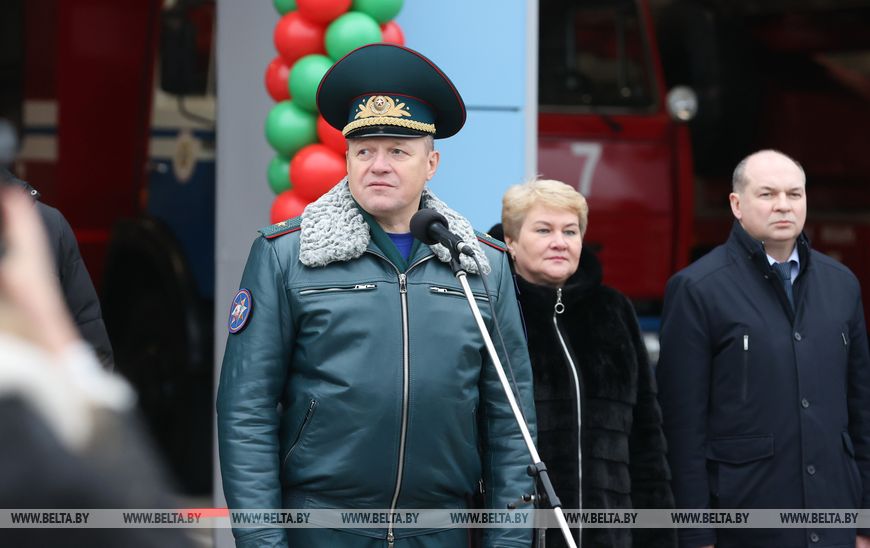 16 декабря, Мозырь /Корр. БЕЛТА/. Более 1 тыс. спасателей Беларуси решили квартирный вопрос с начала года, как получив арендное жилье, так и построив квадратные метры с господдержкой. Такую информацию озвучил министр по чрезвычайным ситуациям Вадим Синявский на открытии новой пожарной аварийно-спасательной части №7 пожарного аварийно-спасательного отряда №4 в Мозыре на объектах Мозырского нефтеперерабатывающего завода, передает корреспондент БЕЛТА.