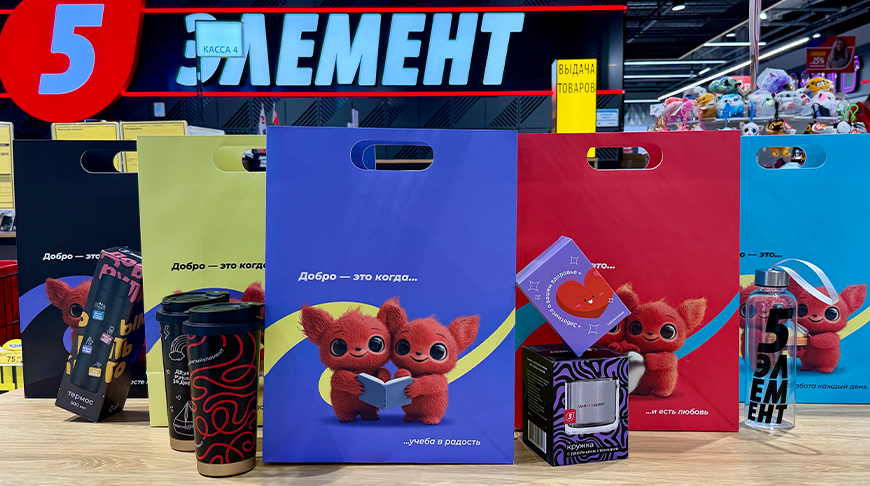 Не знаете, что подарить близким? Создайте по-настоящему душевный сюрприз с помощью наших лимитированных боксов! Это эксклюзивные "Пакеты Добра" в стиле культовой серии "Love is...". Вы можете наполнить их товарами из нашей коллекции проекта. Мерч в "5 элементе" весьма практичный: стильные термокружки, экосумки, картхолдеры, таблетницы и многое другое, - полезные мелочи для любого белоруса, которые будут применимы в быту.