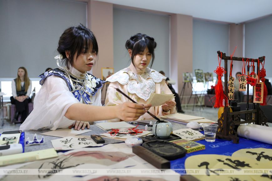 Каллиграфия - одно из древнейших искусств Китая, которое насчитывает пять тысяч лет. Это не просто написание символов, но и китайская философия, у каждого мастера свой стиль изображения. На мастер-классе сразу несколько девушек демонстрируют завораживающий процесс написания и предлагают всем желающим присоединиться.