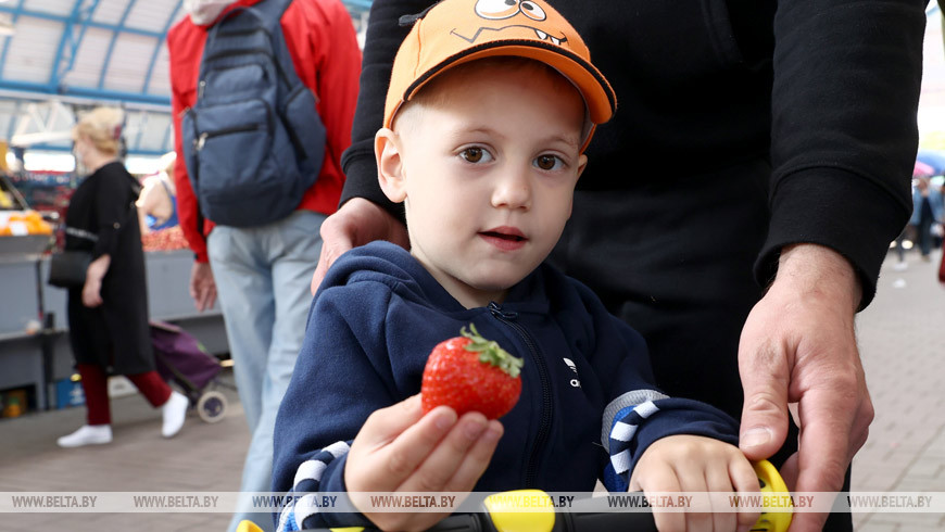 Комаровка. Субботнее утро. Людей с рюкзаками и шопперами - яблоку негде упасть. Прилавки сезонного рынка завалены фруктами, овощами и ягодами, но звезда столичного рынка, конечно, клубника. Наконец-то наша, белорусская. Разброс по ценам большой: от 11 до 18 рублей за кило.