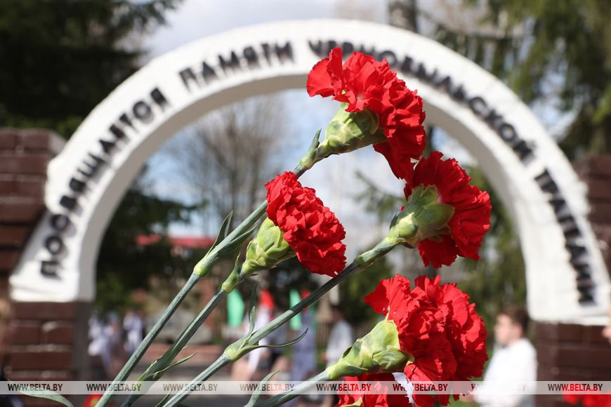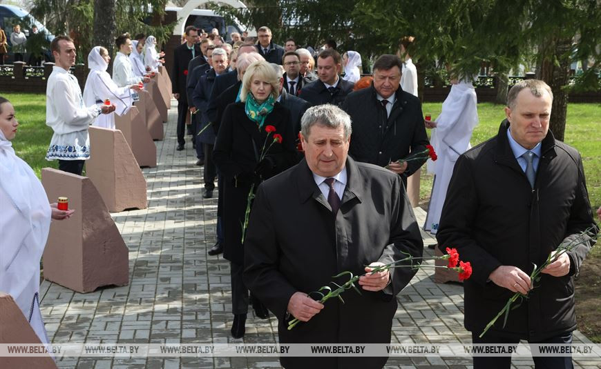 Наталья Кочанова и представители Совета Республики, Могилевского областного исполнительного комитета, Славгородского райисполкома, депутатского корпуса возложили цветы и венки к памятному знаку и почтили минутой молчания память о тех, кто отдал свои жизни за спасение других людей и земель после аварии на ЧАЭС.