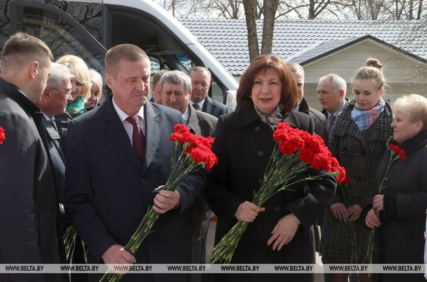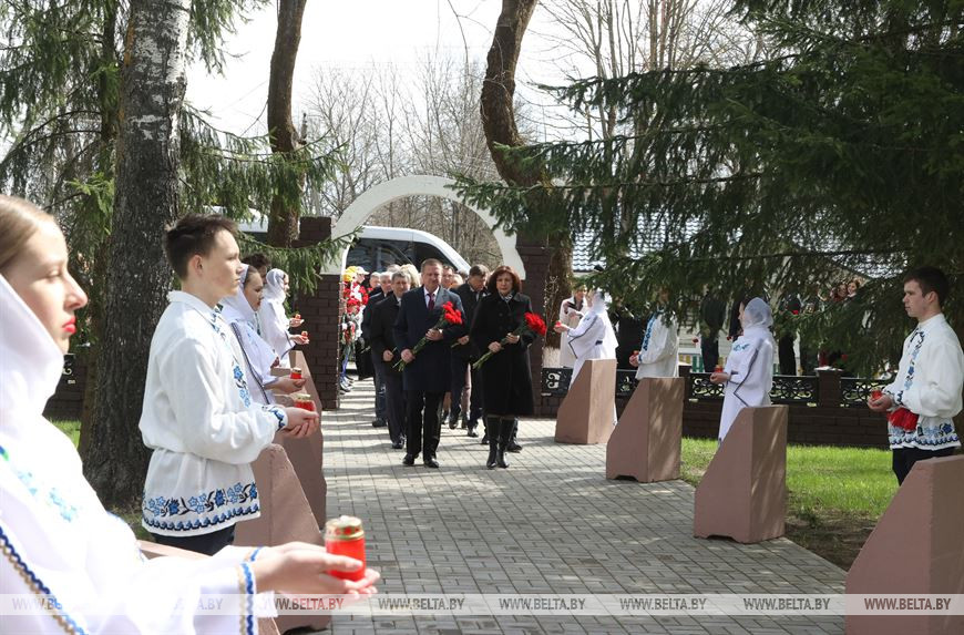 23 апреля, Славгород /Корр. БЕЛТА/. Председатель Совета Республики Наталья Кочанова приняла участие в возложении цветов к мемориалу захороненных деревень Славгородского района, передает корреспондент БЕЛТА.