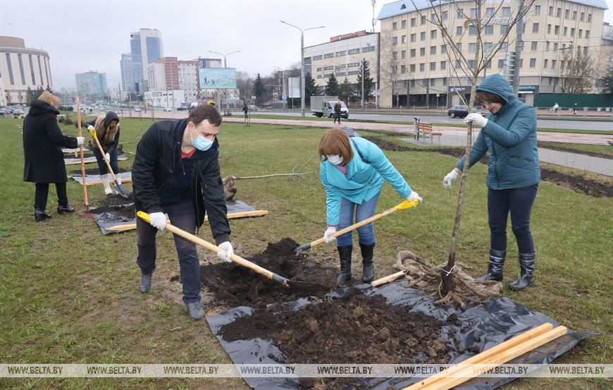 17 апреля, Минск /Корр. БЕЛТА/. Председатель Совета Республики Наталья Кочанова, работники секретариата и члены президиума совместно с руководством администрации, жителями и работниками предприятий Московского района во время республиканского субботника заложили аллею на площади Богушевича в Минске, передает корреспондент БЕЛТА.