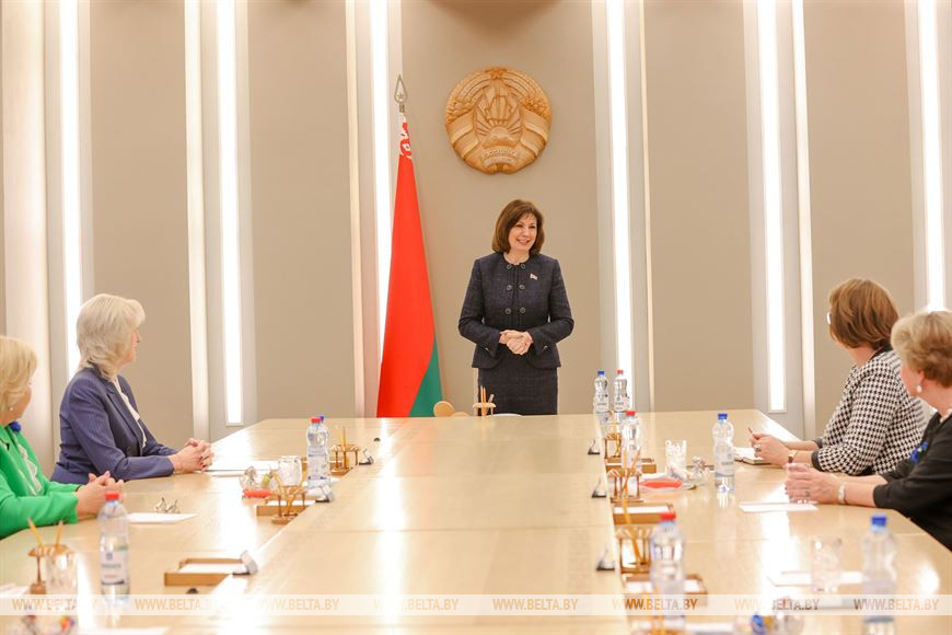 1 октября, Минск /Корр. БЕЛТА/. Председатель Совета Республики Наталья Кочанова сегодня встретилась с делегацией Союза женщин России, передает корреспондент БЕЛТА.
