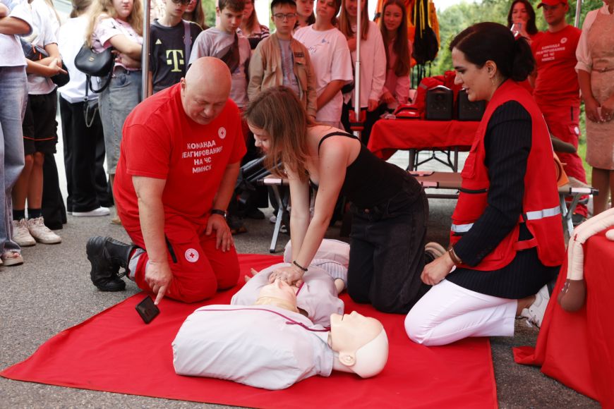 Волонтеры Красного Креста всякий раз дежурят на триатлонах, полумарафонах, а сами они себя называют "красными человечками с аптечкой". "Студенты, учащиеся, достигнув 18 лет, после определенного обучения могут участвовать в оказании первой помощи, обеспечении безопасности. Команда реагирования состоит из таких же обыкновенных учащихся вузов и работников. Они максимально готовы и обучены оказывать помощь в разных чрезвычайных ситуациях", - подчеркнул заместитель председателя Минской городской организации Красного Креста Сергей Лепешко.