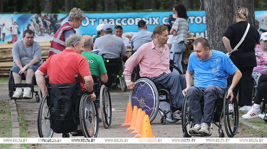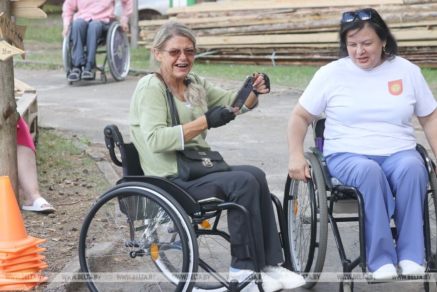Режим максимальной загрузки и на турслете. Ведь, кроме спортивной части, и гастрономический конкурс, а также песенный в формате караоке. А какой турслет без дискотеки и песен у костра?! Представители команды из Орши Марина Шайдо и Дмитрий Дайнеко заряжены самым главным зарядом - отличным настроением. "Не в первый раз здесь. Все очень нравится. Приятно видеть новые лица. Ожидания самые хорошие, ведь здесь царит атмосфера дружбы, очень весело и здорово. Конкурсы интересные. По спортивной части у нас за много лет все отработано - стрельба, дартс, эстафета и др. Поэтому всей командой на творческий вечер подготовили миниатюру по мотивам кинофильма "Белое солнце пустыни", - приоткрыли свой расклад туристы из Орши. Всего в команде из северного региона страны восемь человек, пятеро из которых на колясках.