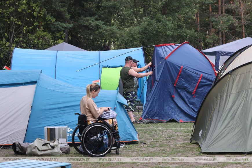 Председатель Республиканской ассоциации инвалидов-колясочников Евгений Шевко и сам в составе одной и команд. На правах встречающей стороны пожелал всем хорошего настроения и успехов. "Раньше размещались на лесной площадке, а сейчас создали достаточно хорошую инфраструктуру. Палатки, шатры, специальные санузлы и душевые с горячей водой. В этом году тестируем специальные разборные кровати для инвалидов-колясочников. Если результат будет положительный, закупим их для следующих слетов. Есть и все необходимое оборудование для проведения творческих конкурсов. Аппаратура серьезная. Многое сделали по развитию инфраструктуры, к примеру обустроили специальные пандусы и съезды к песчаному пляжу и реке. Лодки, байдарки, катамараны - все это есть", - подчеркнул Евгений Шевко.