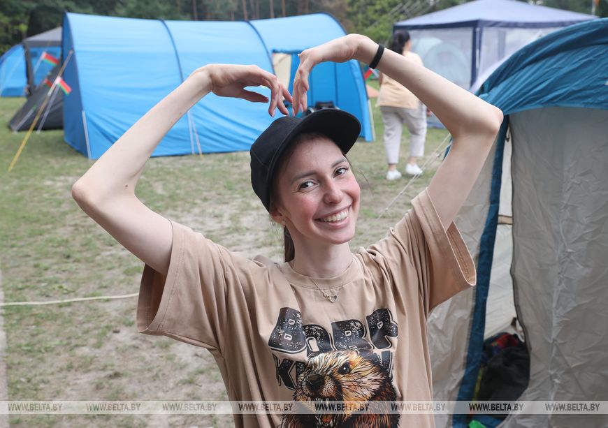 Виктория Сафронова из Минска, но в эти дни отдыхает и соревнуется за команду из Гродно - попросили поддержать регион. "Я спортсменка. Профессионально занимаюсь стрельбой из лука и большим теннисом. На турслет приехала уже, наверное, в шестой раз. Мне все нравится, атмосфера классная, каждый раз новые ребята, новые знакомства", - рассказывает девушка.