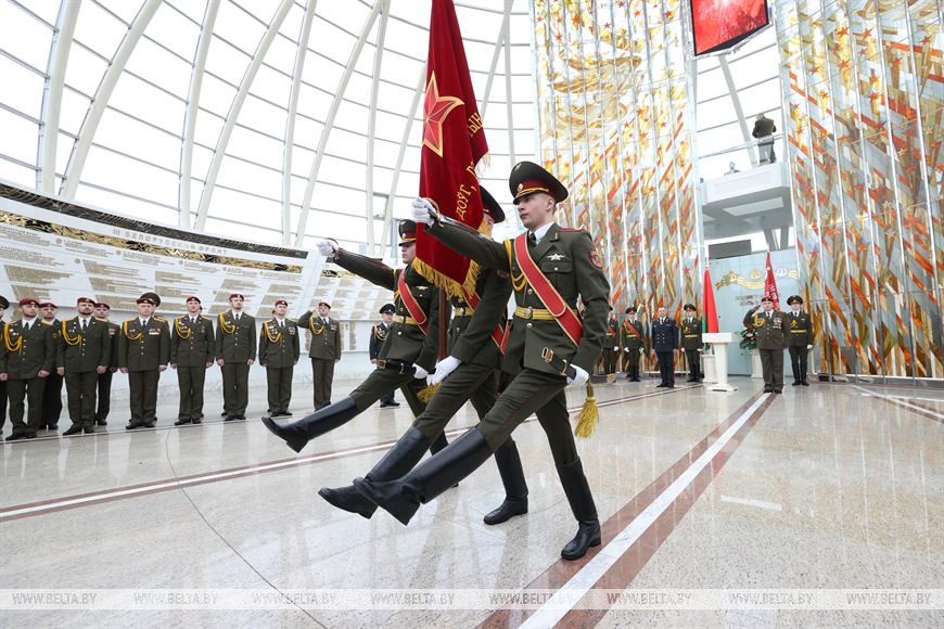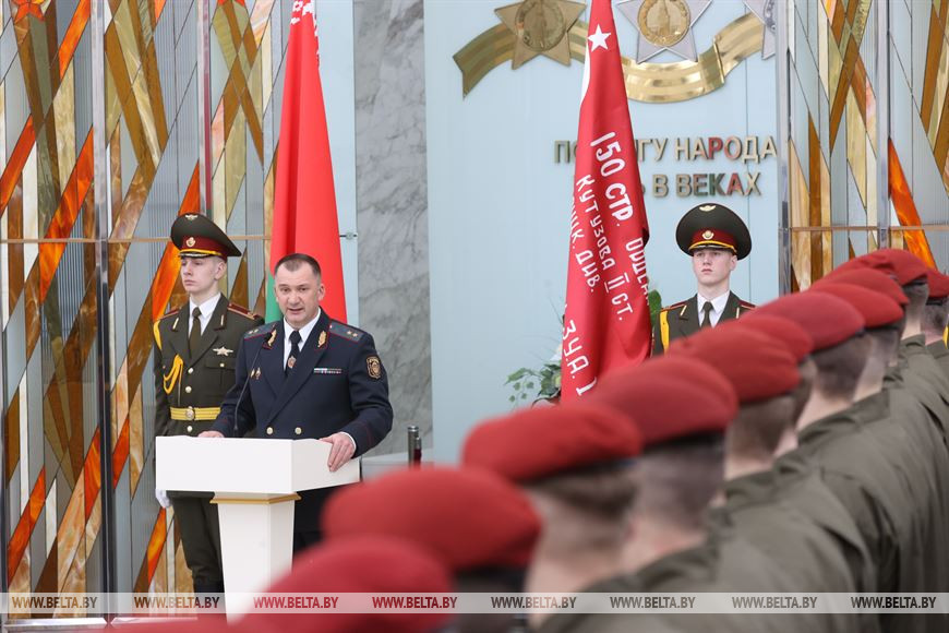 16 марта, Минск /Корр. БЕЛТА/. Мы чтим прошлое, дорожим настоящим и готовы сражаться за будущее. Об этом заявил в музее истории Великой Отечественной войны на торжественном ритуале вручения боевого знамени отдельному отряду специального назначения "Рысь" его командир полковник Дмитрий Лутов, сообщает корреспондент БЕЛТА.