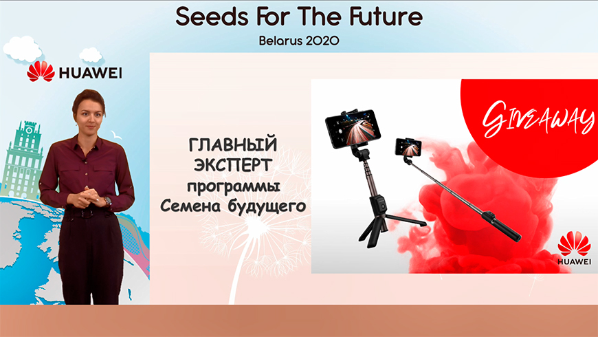 В завершение прямого эфира провели квиз, чтобы выявить главного эксперта программы "Семена будущего". Победителю вместе с сертификатом вручат беспроводной монопод-штатив Huawei.