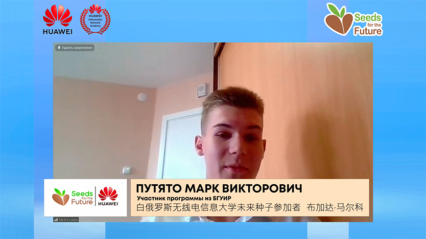 Компания Huawei стремится найти молодые таланты в сфере ИКТ во всех уголках Беларуси, чтобы предоставить им возможность развивать свои способности. Поэтому в 2020 году проект Seeds for the Future расширил свою географию и включил региональные вузы страны. Ведущая церемонии также процитировала основателя компании Huawei мистера Жэнь Чжэнфэя: "Мы невысокая трава, но пытаемся вырасти в небольшое деревце".