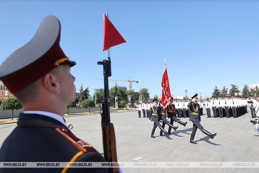 26 июня, Минск /Корр. БЕЛТА/. Конкурс в Академию МВД среди девушек составляет более 4 человек на место. Об этом сообщил журналистам министр внутренних дел Иван Кубраков во время торжественного ритуала выпуска офицеров, получивших высшее образование в Академии МВД на площади Государственного флага в Минске, передает корреспондент БЕЛТА.