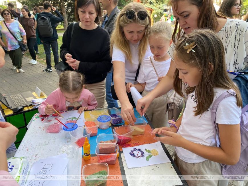 Ольга Римарович из Минска с шестилетней Николь остановились у стенда центра дополнительного образования "Наставник". Организаторы проводят для посетителей занимательные мастер-классы. "Я хочу, чтобы ребенок приучался к какому-то творчеству, смотрел, как молодежь выбирает разные профессии, знакомился с тем, какие в принципе учебные заведения есть в Минске и не только. Сейчас мы пробуем мастер-класс по аппликации, дочь изобразила осенний лес, прекрасно получилось. Развивающий центр "Наставник" очень понравился. Николь уже занимается керамикой, возможно, сегодня мы найдем себе еще пару кружков. Фестиваль профессий - это профориентация не только для взрослой молодежи, но и для малышей. Даже дошколята найдут, чем здесь заняться", - отметила она.