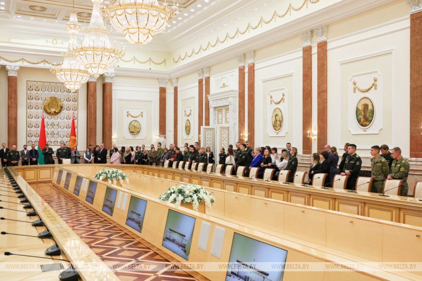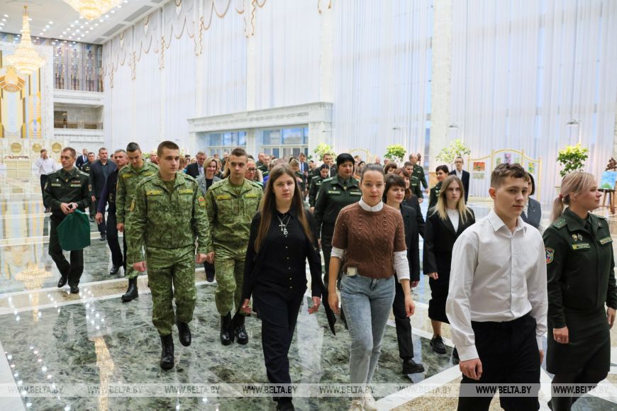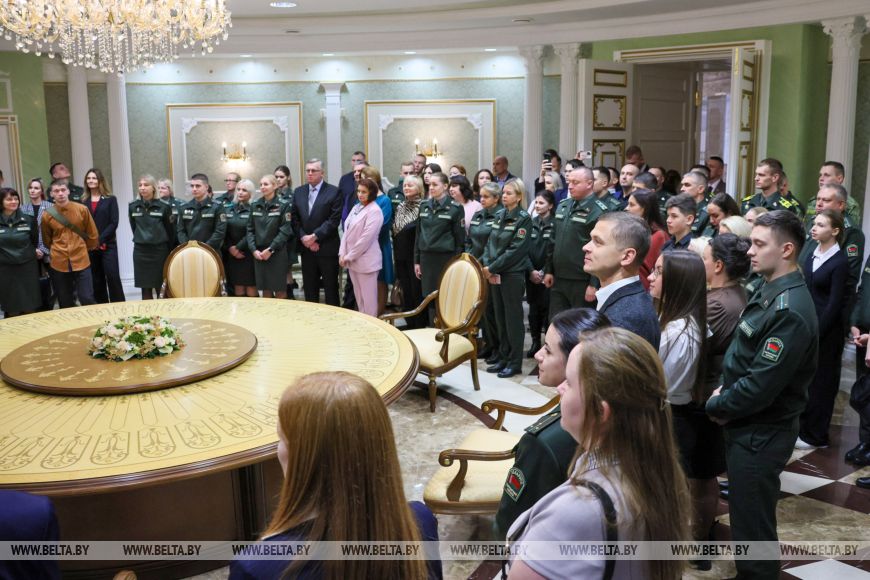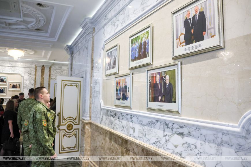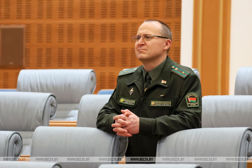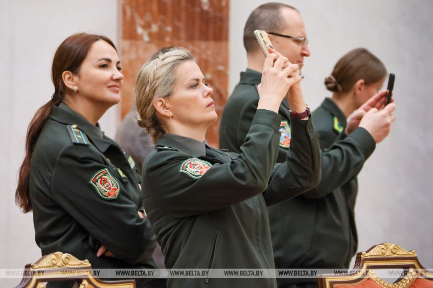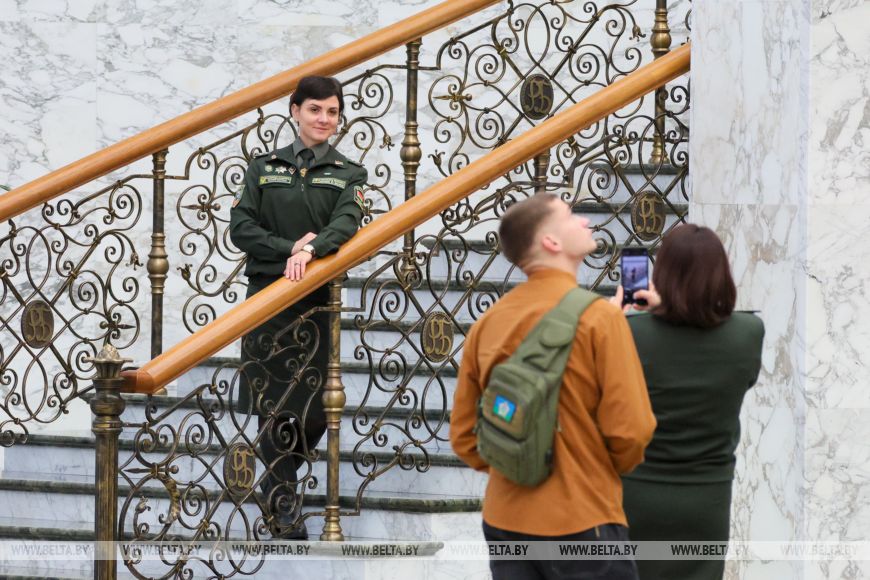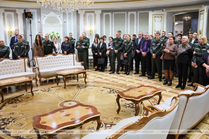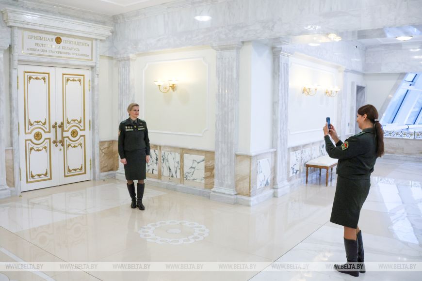 Основным поводом для посещения главного здания страны стало 80-летие отряда пограничного контроля "Минск". Военнослужащие именно этого подразделения каждый день встречают и провожают пассажиров многочисленных рейсов.