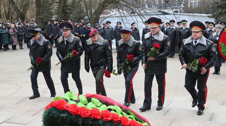 3 марта, Минск /Корр. БЕЛТА/. Сотрудники органов внутренних дел помнят и чтят подвиги своих коллег, погибших при исполнении служебного долга. Об этом после торжественного ритуала у Памятника сотрудникам ОВД и внутренних войск МВД, погибшим при исполнении служебного долга, рассказал журналистам министр внутренних дел Иван Кубраков, передает корреспондент БЕЛТА.