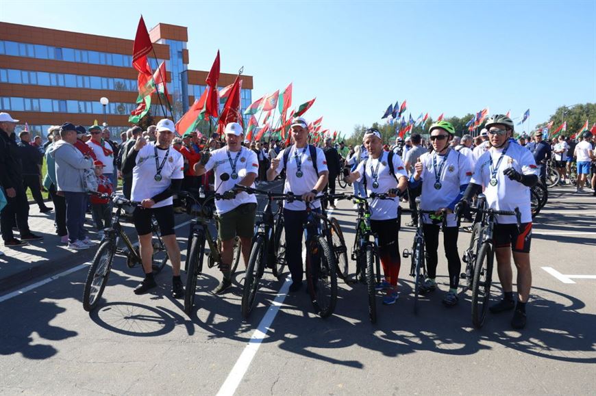 Как сообщалось ранее, турслет начался с велопробега. До его старта участники возложили корзины с цветами в крипте столичного храма-памятника Всех святых. Протяженность маршрута составила 78 км. Велопробег прошел по знаковым местам.