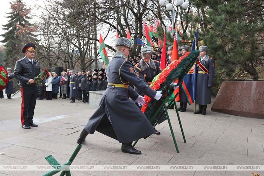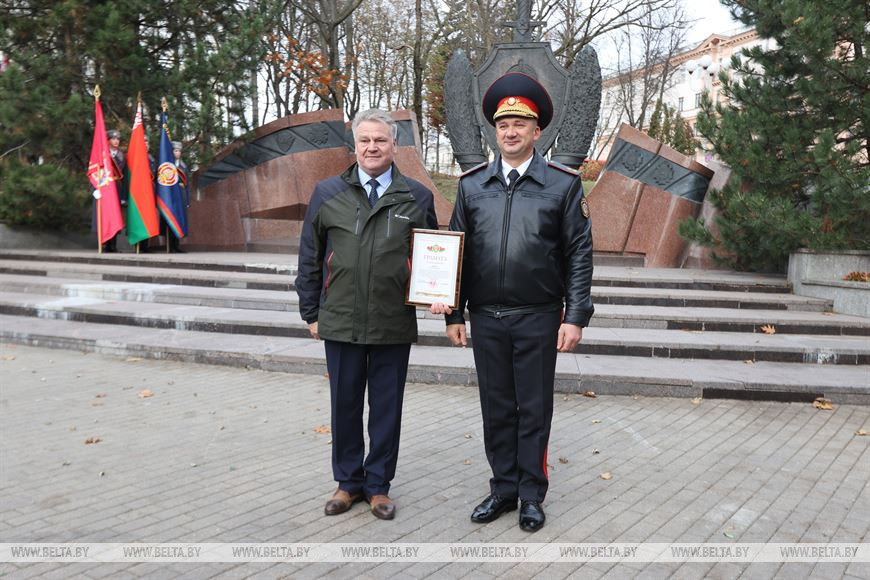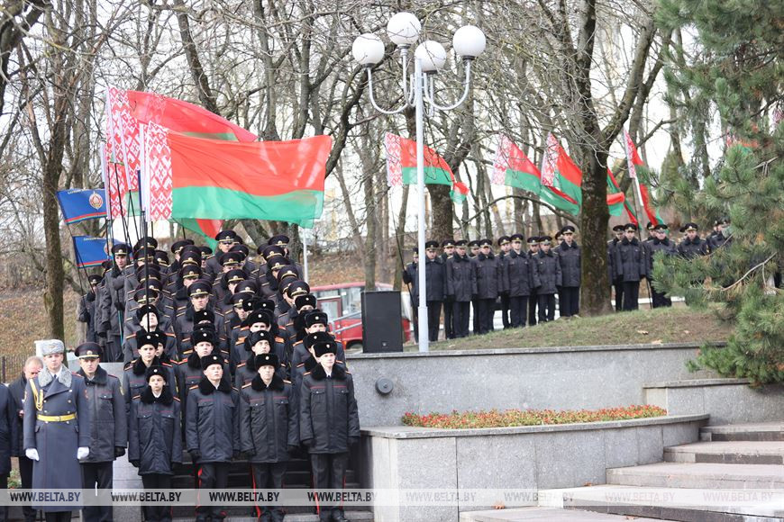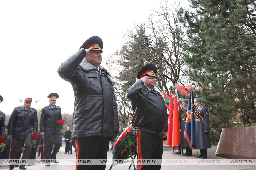 "Все знаковые и памятные мероприятия МВД начинаются у памятника погибшим сотрудникам органов внутренних дел и внутренних войск. Это дань уважения живых памяти погибших при исполнении воинского и служебного долга, отдавших свою жизнь во имя правопорядка, общественной безопасности и торжества закона. Это наш святой долг перед ушедшими коллегами и друзьями. Нельзя не отметить, что 20 лет назад памятник был возведен по инициативе Республиканского совета белорусской общественной организации ветеранов органов внутренних дел и внутренних войск на пожертвования наших сотрудников и военнослужащих внутренних войск", - подчеркнул глава милицейского ведомства.