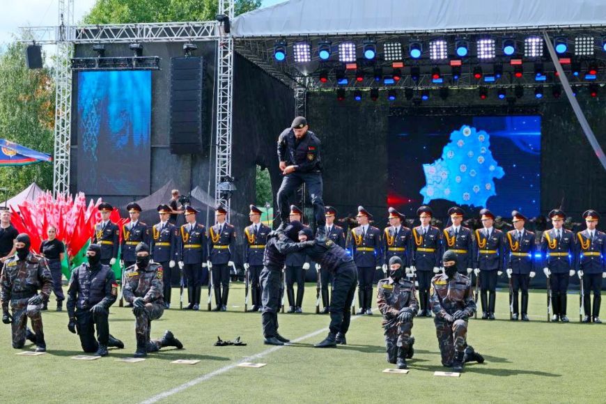 По традиции рядом с милиционерами из разных уголков страны и их семьями собрались курсанты и лицеисты, воспитанники военно-патриотических клубов, ветераны ведомства. Программа продолжилась марш-броском руководителей на полосе препятствий ОМОНа. Министр и его заместители, начальники ГУВД/УВД и их заместители, командиры войсковых частей внутренних войск МВД преодолеют маршрут общей протяженностью более семи километров в форме эстафеты, состоящей из шести этапов.