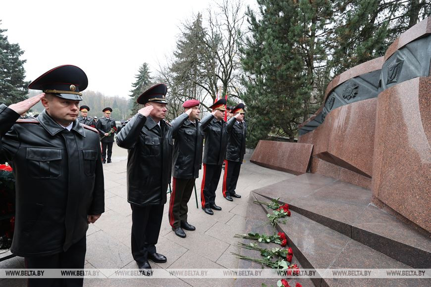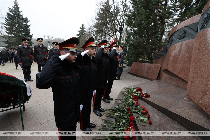 В Минске у памятника сотрудникам органов внутренних дел и внутренних войск МВД, погибшим при исполнении служебного и воинского долга, прошло мероприятие ко Дню чествования ветеранов. В церемонии приняли участие министр внутренних дел Иван Кубраков, помощник Президента - инспектор по Минску Александр Барсуков, помощник Президента - инспектор по Гродненской области Юрий Караев, руководители МВД, ветераны, курсанты, лицеисты, а также воспитанники патриотических клубов.