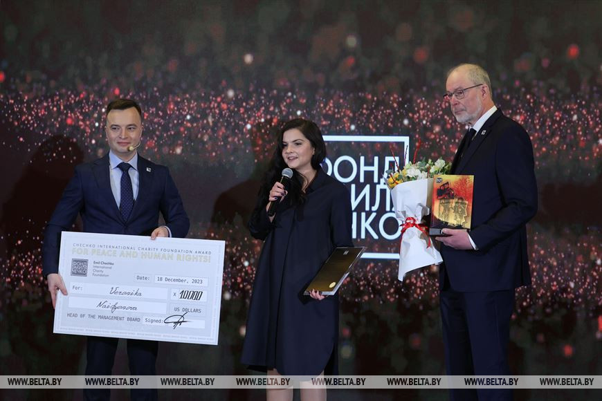 18 декабря, Минск /Корр. БЕЛТА/. Лауреатами первой международной правозащитной премии "За мир и права человека" стали журналист и руководитель проекта "Кригс Киндер" Вероника Найденова и правозащитник, участник проекта "Кригс Киндер" Марк Бриль из Германии, передает корреспондент БЕЛТА.