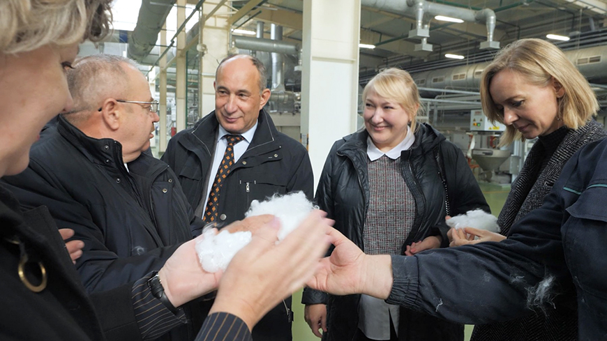 - Наше предприятие лидирует в производстве полиэфирной продукции на всем постсоветском пространстве и в Европе. Мы совершенствуемся и модернизируем свои мощности, повышаем конкурентоспособность выпускаемой продукции за счет улучшения качества, снижения издержек и получения ее новых видов. В частности, не так давно реализован инвестиционный проект ''Комплекс по производству полиэфирной продукции в ОАО ''Могилевхимволокно''. Первая очередь строительства. Реконструкция химического цеха №2 производства органического синтеза с организацией производства полиэфирного волокна способом прямого формования''. Это позволило нам внедрить современные технологии производства полиэфирной продукции, а также освоить выпуск нового типа полиэфирного волокна ''конжугейт'', ранее не производимого на территории ЕАС. Полиэфирное волокно ''конжугейт'' как инновационный продукт используется в производстве мебельной и бытовой продукции - одеял и подушек, - отмечает генеральный директор ОАО ''Могилевхимволокно'' Владимир Марков. - Сейчас все отечественные предприятия нацелены на импортозамещение, в связи с введением санкций, и ''Могилевхимволокно'' не исключение. Складывающаяся ситуация подталкивает нас искать еще более тесные связи с белорусскими и российскими партнерами, производить свою продукцию вместо поставляемой из-за рубежа.
