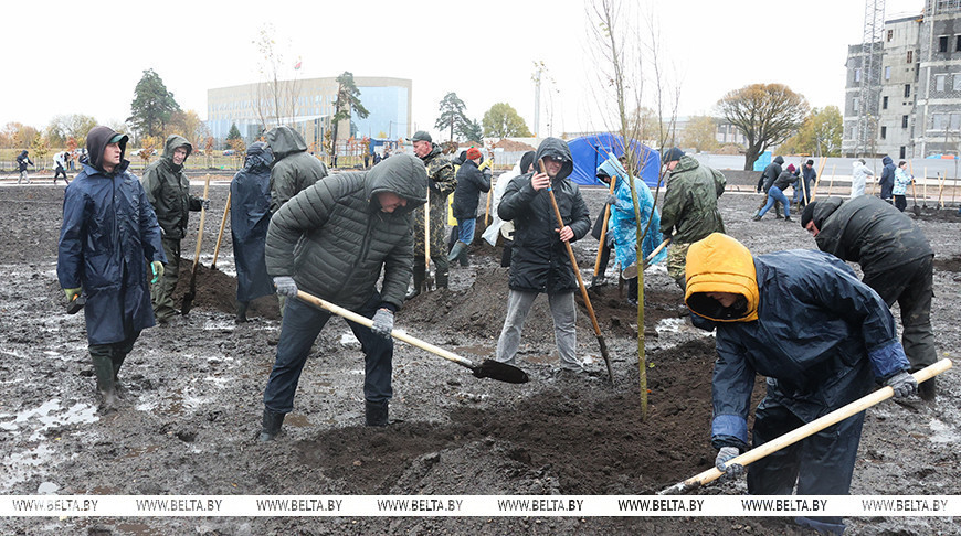 Он заметил, что возведение музея и обустройство парка - действительно тяжелый труд. И молодые ребята каждый день, не только в республиканский субботник, включены в строительство. Объект объявлен Всебелорусской молодежной стройкой. Ребята из Минска каждый день приходят сюда и трудятся в составе полноценных строительных бригад.