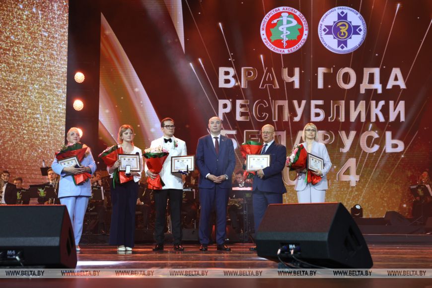 12 июня, Минск /Корр. БЕЛТА/. Имена пяти победителей конкурса "Врач года Республики Беларусь" по итогам 2024 года назвали сегодня во время торжественного мероприятия, посвященного Дню медицинских работников, которое проходит во Дворце Республики в Минске, передает корреспондент БЕЛТА.