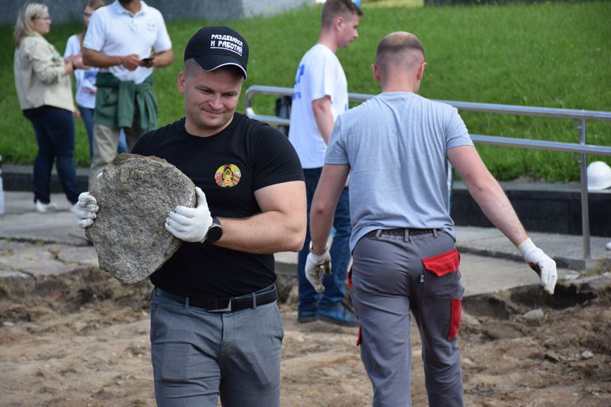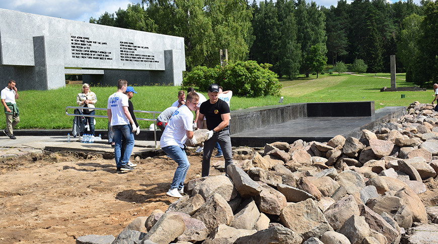 Сегодня бойцы студенческих строительных отрядов Всебелорусской молодежной стройки "Спадчына - 2022" имени Героя Советского Союза П.М.Машерова Брестского государственного технического университета, "Память" имени Героя Советского Союза В.Ф.Мухина Белорусского государственного университета транспорта совместно с представителями молодежных парламентов России приняли участие в совместной добровольческой трудовой акции по благоустройству объектов реконструкции мемориального государственного комплекса "Хатынь".