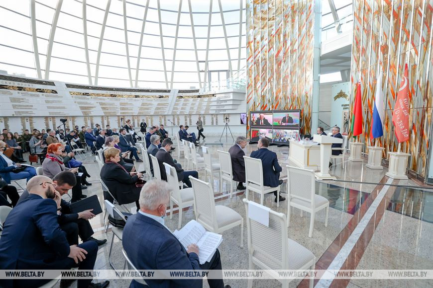 3 декабря, Минск /Корр. БЕЛТА/. Беларусь и Россия занимают единую позицию, защищая историческую правду о Великой Отечественной войне, заявила председатель Совета Федерации Федерального собрания России Валентина Матвиенко. Она выступила по видеосвязи во время открытия временной экспозиции "Битва за Москву. Бессмертие подвига", посвященной 80-летию битвы за Москву, в Белорусском государственном музее истории Великой Отечественной войны, передает корреспондент БЕЛТА.