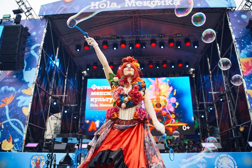 Для гостей была организована насыщенная программа: традиционная музыка, уникальные фотозоны, различные активности для детей и взрослых, танцевальные мастер-классы и тематические квизы, посвященные мексиканской культуре и истории.