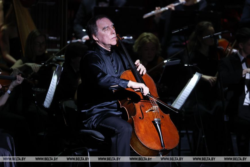 На сцене Большого театра Беларуси сегодня представлен один из крупнейших коллективов страны - Симфонический оркестр Большого театра Беларуси, руководит которым дирижер Большого театра России Алексей Богорад. В качестве специального гостя выступает выдающийся виолончелист, педагог, директор Санкт-Петербургского дома музыки народный артист России Сергей Ролдугин.-0-