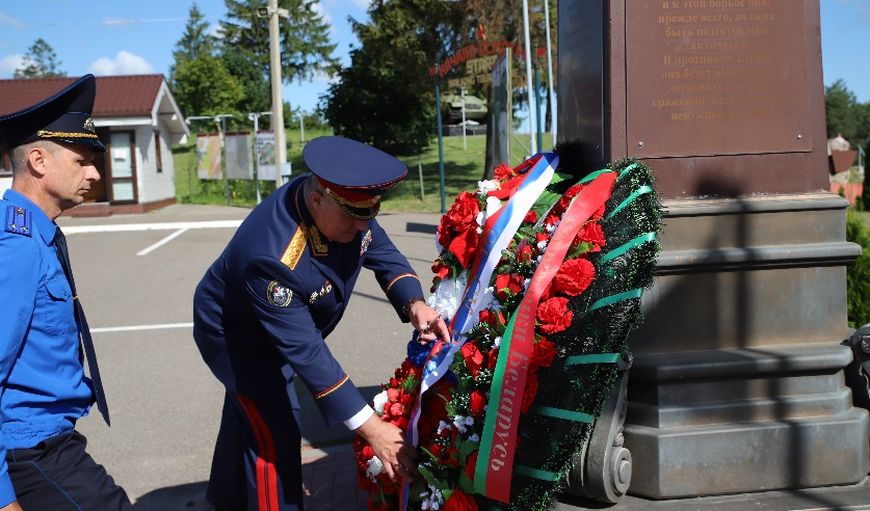 Экскурсионная программа продолжилась в историко-культурном комплексе "Линия Сталина", где состоялось возложение венка и цветов к памятнику Маршалу Советского Союза Георгию Жукову. Затем ребята отправились в "Зубренок".-0-