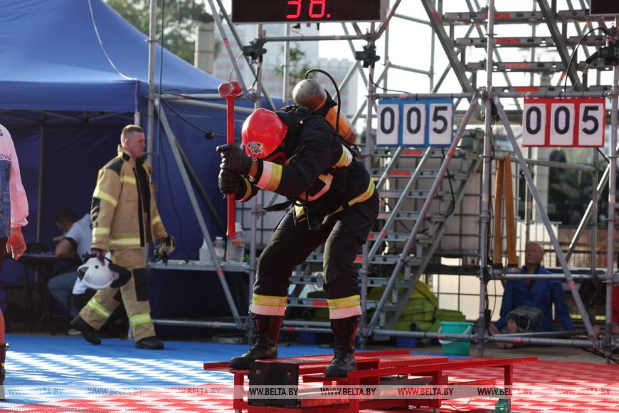 На другой площадке - перед центральным входом в парк Победы - с 8.00 до 18.00 развернутся международные соревнования "Сильнейший пожарный-спасатель-2025". Вместе с белорусскими спасателями участие в соревнованиях примут спортсмены-спасатели из Санкт-Петербурга и Вологодской области Российской Федерации. Участники преодолеют комплекс комбинированных силовых и скоростных нагрузок, которые нужно выполнить за минимальное время в полном снаряжении пожарного-спасателя. Кроме того, в этот день клятву на верность Родине принесут 160 первокурсников, среди которых 10 девушек, выбравших профессию спасателя.