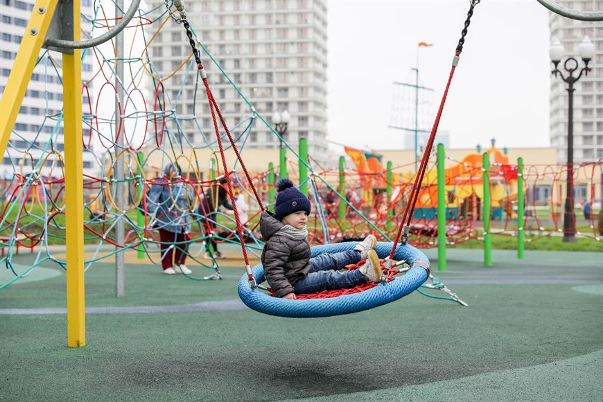 Отдельный разговор – о спортивных и детских площадках, которые есть у каждого дома. Специальное мягкое покрытие не позволит ребенку получить травму даже при падении. А сколько восторгов вызывают и спортивные тренажеры, и качели, и специальные игровые комплексы! Один канатный городок чего стоит – ребята с удовольствием карабкаются по веревочным ступенькам, развивая координацию и силу.