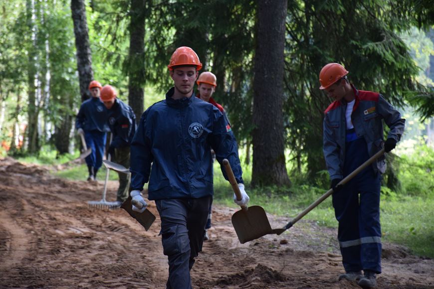 Сегодня бойцы студенческих строительных отрядов Всебелорусской молодежной стройки "Спадчына-2022" имени Героя Советского Союза П.М.Машерова Брестского государственного технического университета, "Память" имени Героя Советского Союза В.Ф.Мухина Белорусского государственного университета транспорта совместно с представителями молодежных парламентов России приняли участие в совместной добровольческой трудовой акции по благоустройству объектов реконструкции мемориального комплекса "Хатынь".