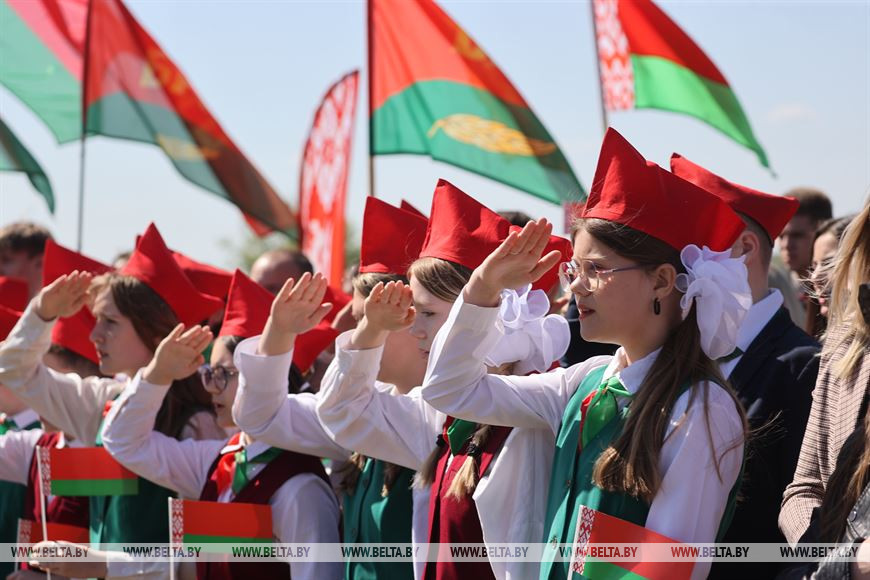 "Архитектурная композиция на гостеприимной дзержинской земле открывается в канун одного из главных праздников страны. С сегодняшнего дня в небосводе наивысшей точки Беларуси на нас будет гордо смотреть государственный флаг нашей родины - символ суверенитета, нашей свободы, стремление к которым белорусы пронесли сквозь столетия", - отметил Павел Гапанович.