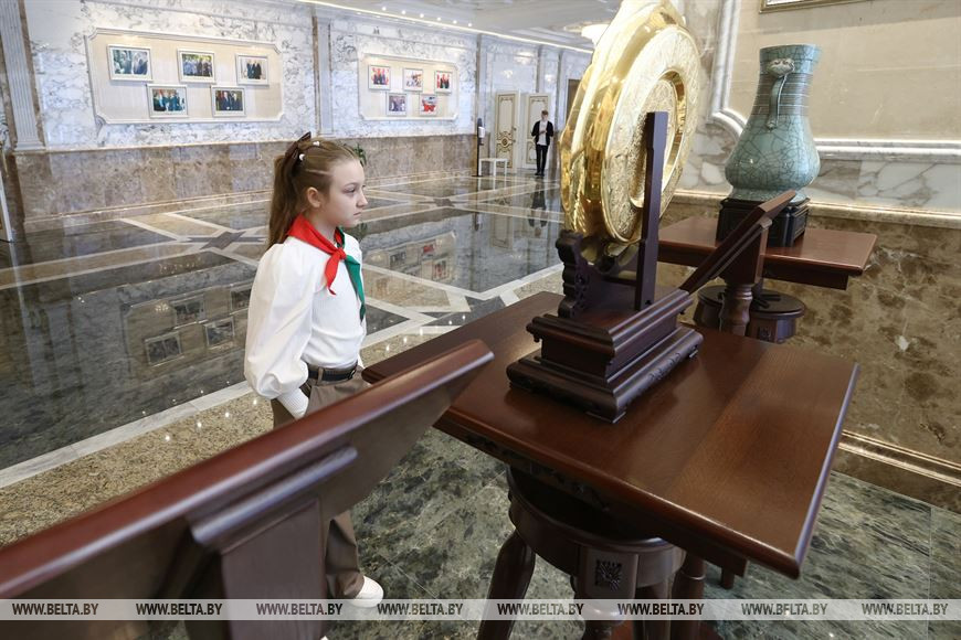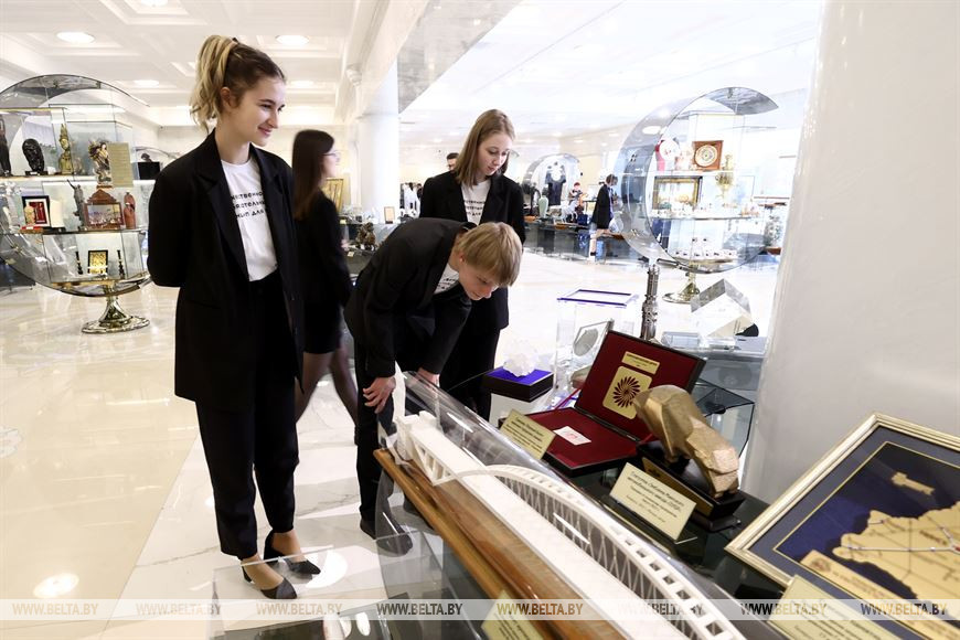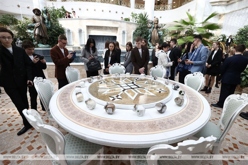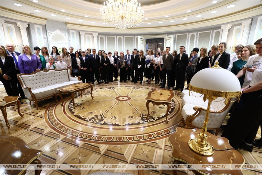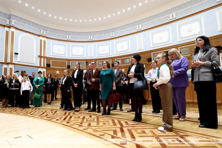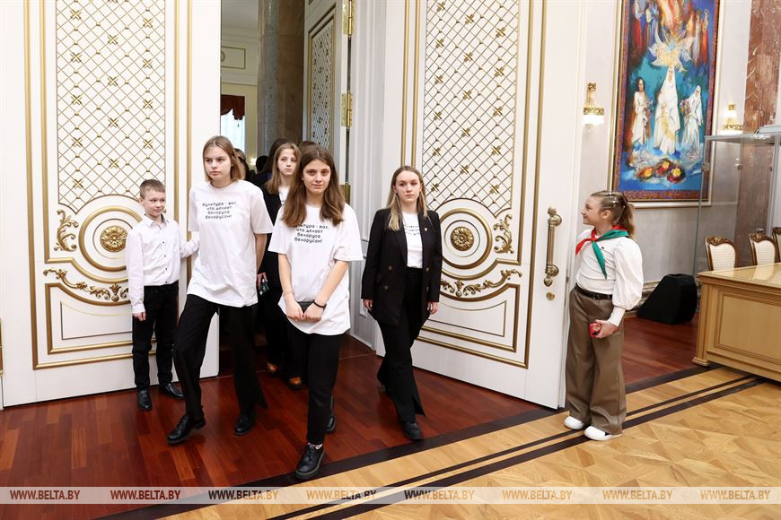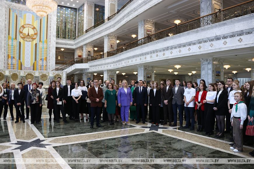 24 марта, Минск /Корр. БЕЛТА/. Гостями дворца стали молодые люди из Бреста и Каменецкого района. Ребята в конце прошлого года принимали участие в конкурсах, в ходе которых в том числе изучали выступления Президента Беларуси, выбирали самые запоминающиеся, интересные и важные для себя цитаты. Теперь они получили возможность побывать в тех залах, где эти цитаты звучат, где принимаются важнейшие для страны решения.