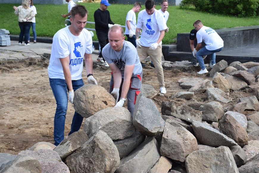 19 июля, Минск /Корр. БЕЛТА/. Бойцы студенческих строительных отрядов Всебелорусской молодежной стройки "Спадчына-2022" имени Героя Советского Союза П.М.Машерова Брестского государственного технического университета, "Память" имени Героя Советского Союза В.Ф.Мухина Белорусского государственного университета транспорта совместно с представителями молодежных парламентов России приняли участие в совместной добровольческой трудовой акции по благоустройству объектов реконструкции мемориального государственного комплекса "Хатынь", передает корреспондент БЕЛТА.