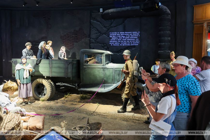 29 июля, Могилев /Корр. БЕЛТА/. Музей Славы Могилевщины расположен рядом с легендарным Буйничским полем, где шли самые ожесточенные оборонительные бои на подступах к областному центру. В оформлении экспозиции, размещенной на двух этажах здания музея, построенного в виде ордена Отечественной войны, использованы самые современные технологии. Мультимедийный формат, различные интерактивы, создание эффекта присутствия - все это помогает посетителям еще больше проникнуться историей области.-0-
