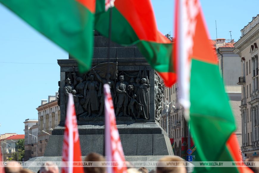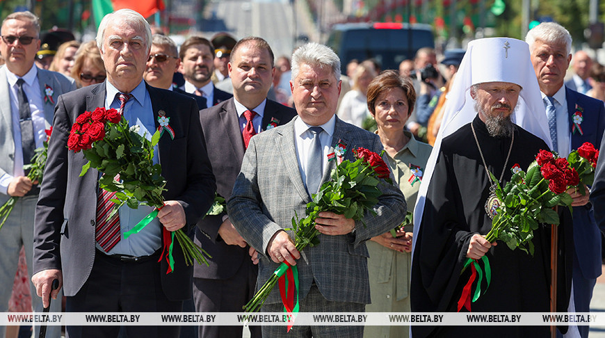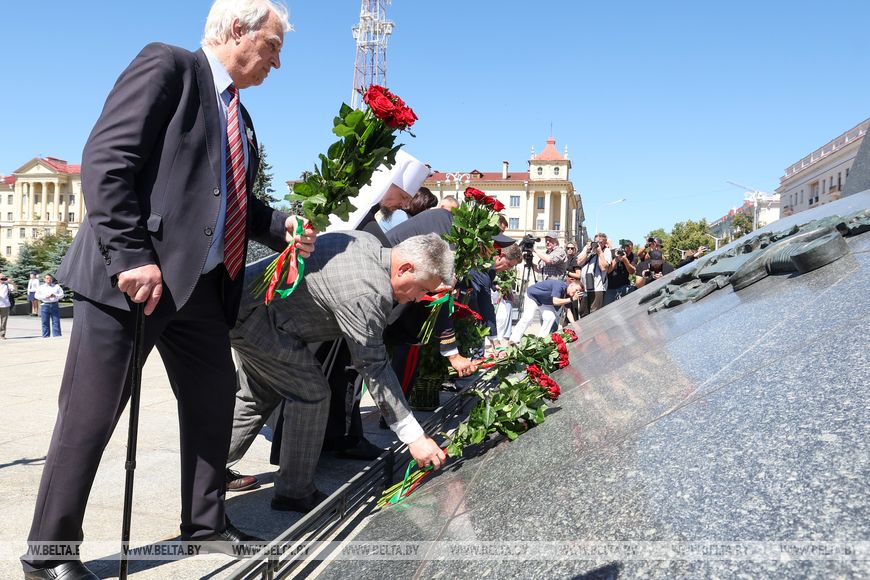 "Хочется вспомнить выступление Президента на торжественном собрании по случаю Дня Независимости. Глава государства сказал очень важные слова, что память о подвиге непокоренного народа - вопрос национального достоинства, без которого разговоры о независимости - просто слова. Потому что память - это то, что нас объединяет, - отметил Вадим Ипатов. - Когда вокруг нашей страны появляются люди, страны, которые делают все, чтобы сфальсифицировать историю Великой Отечественной войны, мы должны этому противостоять. Это удар по нашим предкам, по тем людям, которые выстояли, которые своими жизнями добились вот этой мирной, благополучной жизни, суверенной страны под названием Республика Беларусь. Поэтому такие акции, конечно же, объединяют нас. Второе - мы передаем из поколения в поколение память. Сегодня на возложении присутствует много молодых людей. А молодые люди - это те, кто должен взять в свои руки эту память и нести ее дальше".