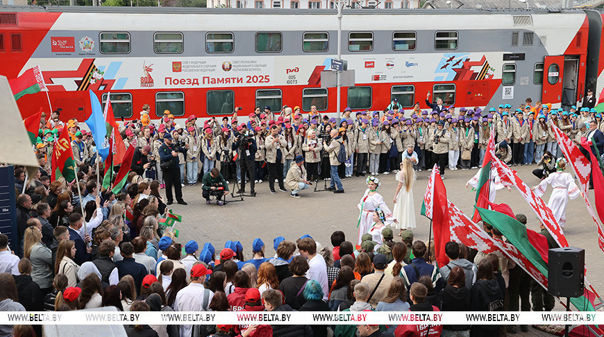Проект "Поезд Памяти", инициированный главами верхних палат парламентов Беларуси и России, впервые реализован в 2022 году. В 2024 году участники проекта посетили 13 городов, преодолев более 9 тыс. км маршрута.-0-