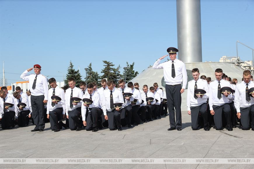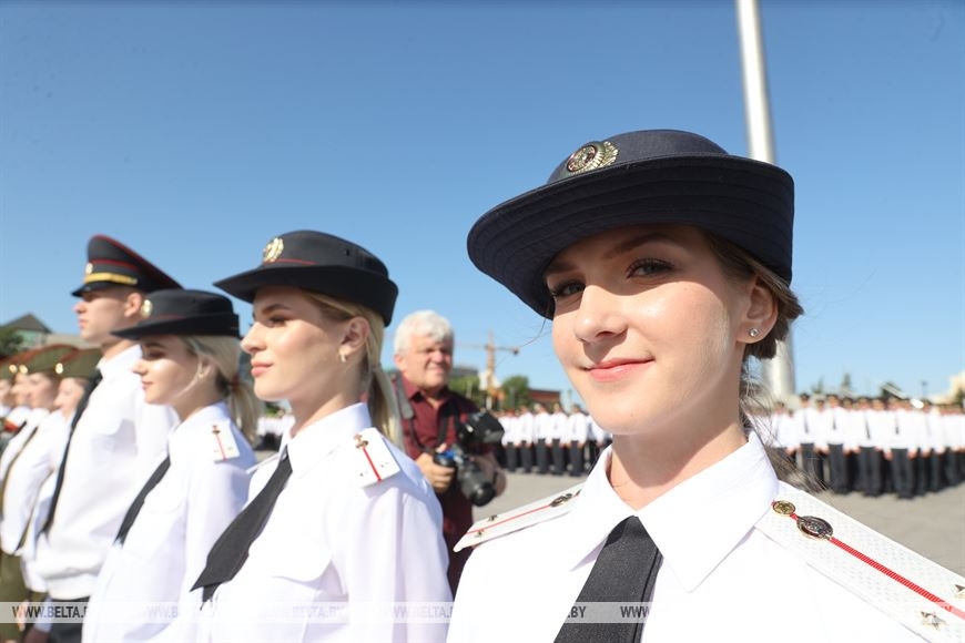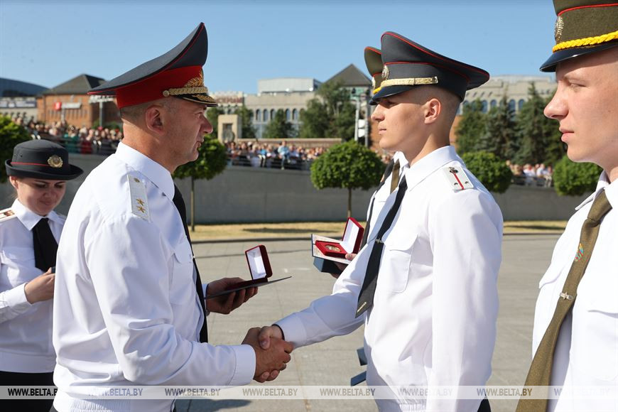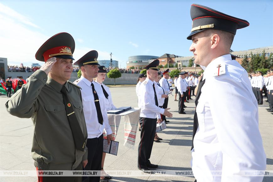 26 июня, Минск /Корр. БЕЛТА/. Выпуск из Академии МВД - отправная точка для нового периода взрослой жизни, заявил начальник академии Александр Васильев во время торжественного ритуала выпуска офицеров, получивших высшее образование в Академии МВД на площади Государственного флага в Минске, передает корреспондент БЕЛТА.