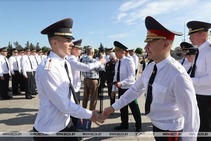"Вот и наступил тот долгожданный, наполненный яркими эмоциями и переживаниями день, который станет для вас отправной точкой для нового периода взрослой жизни. Впереди у вас длинный путь, полный планов, побед и свершений. Вам предстоит успешно проявить себя в повседневной практической деятельности, реализовать свои умения и способности, чтобы в последующем стать настоящими профессионалами в выбранном деле. Надеюсь, что вы сумеете унаследовать традиции и бесценный опыт, накопленный предшествующими поколениями офицерского корпуса нашей Родины, и приумножить их. С честью и достоинством несите звание выпускника Академии Министерства внутренних дел Республики Беларусь, стремитесь быть образцом для сослуживцев, применяйте свои знания во имя торжества законности и справедливости. Помните: чтобы стать настоящим специалистом, нужно продолжать развиваться дальше и не останавливаться на достигнутом", - сказал Александр Васильев.